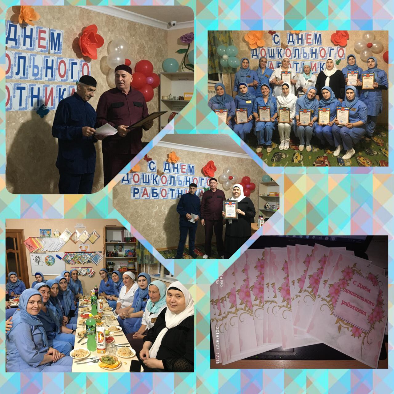 30.09.2019Ежегодно 27 сентября все сотрудники дошкольных образовательных учреждений отмечают свой профессиональный праздник – День воспитателей и всех дошкольных работников! Этот день всегда наполнен веселыми и счастливыми улыбками. В этот праздничный день всех сотрудников МБДОУ «Детский сад №1 «Даймохк» поздравил с профессиональным праздником Глава администрации села А. Байтомиров. Этот праздник создал радостное, приподнятое настроение. Прозвучали красивые поздравления воспитателям, а также всем сотрудникам были вручены грамоты и поздравительные открытки.
