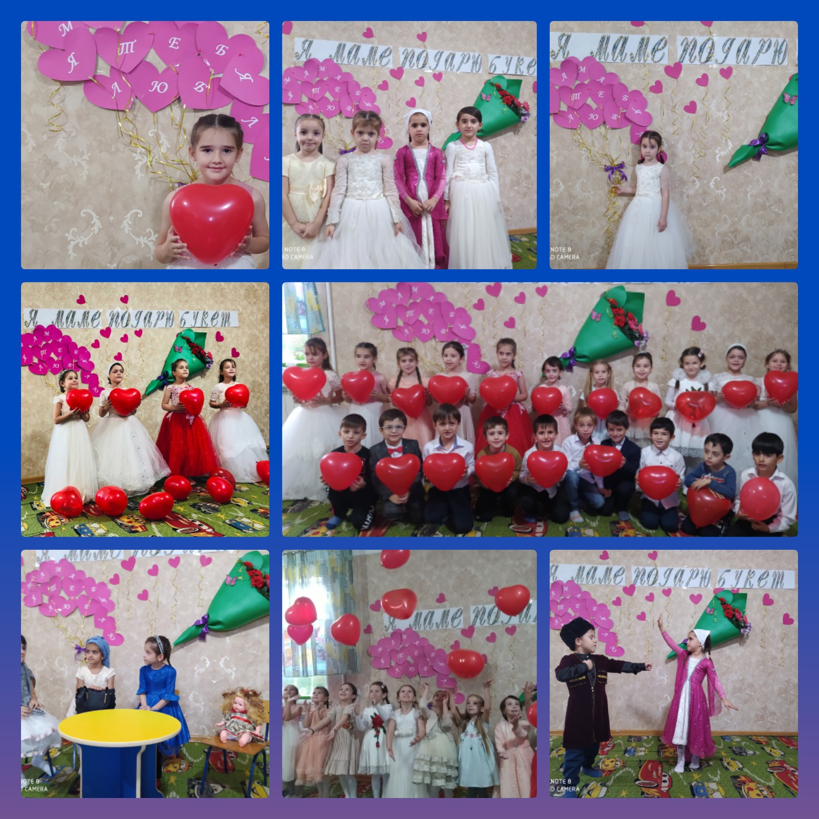 В нашем детском саду были проведены мероприятия, посвященные празднованию Дня Матери «Праздник для мам «Я маме подарю букет», направленные на улучшение хороших отношений в семьях наших детей, воспитание уважения и заботы, желание помочь делать приятное маме, самому дорогому человеку на земле. Ребята рассказывали стихи, танцевали, исполняли песни