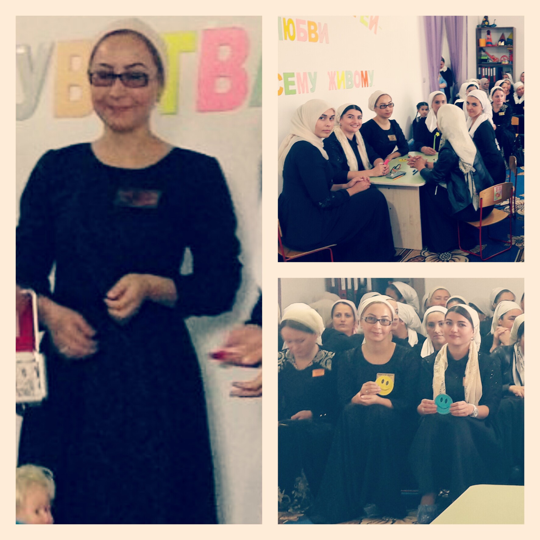 Работники нашего дошкольного учреждения, так же приняли непосредственное участие на данном семинаре, где воспитатель средней группы "Радуга" Талхадова Хедижат Им-Алиевна, выступила с подготовленным материалом в виде деловой игры с воспитателями. Для присутствующих была подготовлена краткая беседа по данной теме, интересные игры,ребусы, пословицы, стихи.. Целью проведения выступления, было побуждение педагогов к самостоятельной работе, самоанализу и самообразованию по данной теме. Овладение практическими приемами взаимодействия с детьми по формированию духовно-нравственной позиции дошкольника. Улучшение психологического самочувствия участников педагогического процесса.