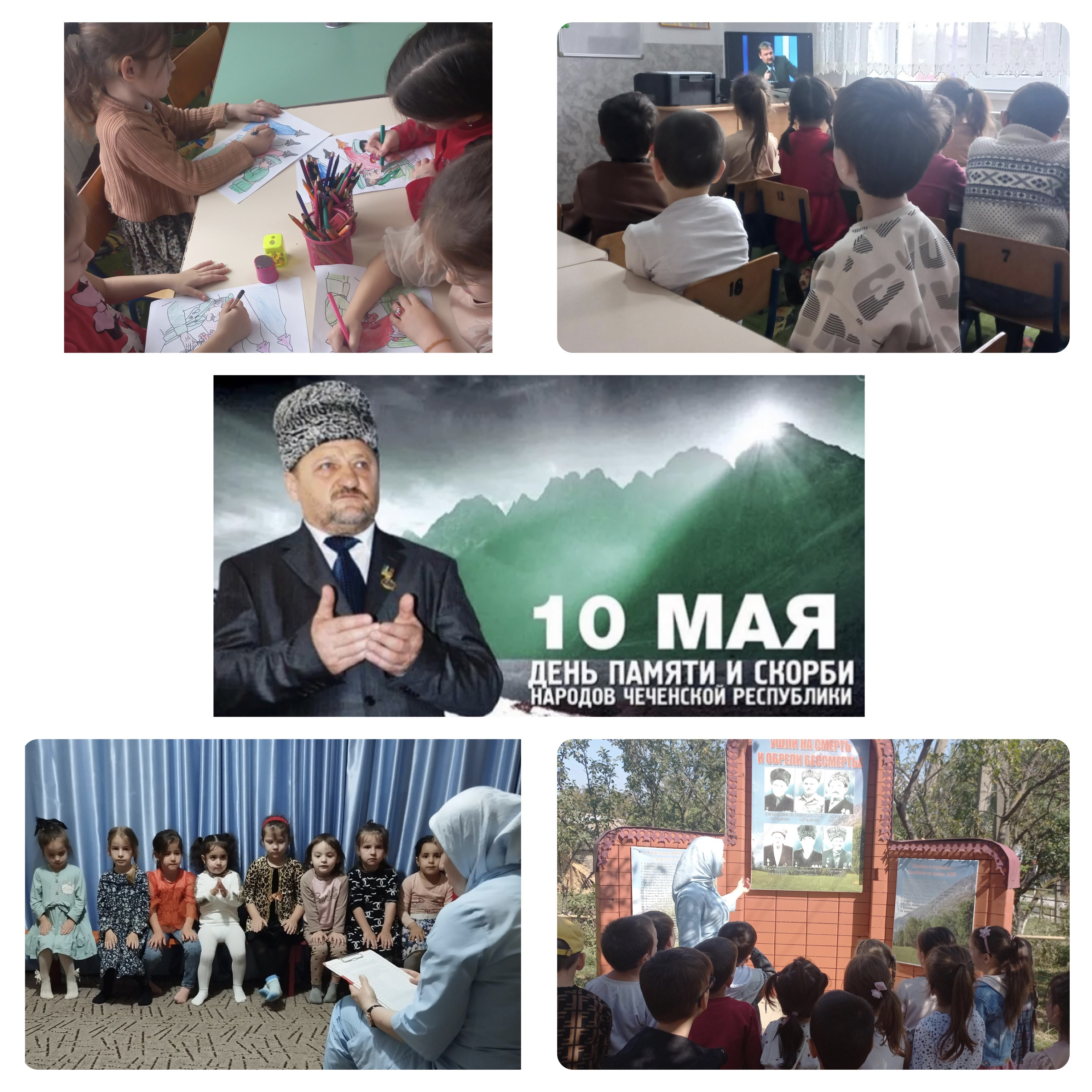 13.05.2024Во всех группах проведены тематические беседы "Любим, помним и чтим", посвященные Дню памяти и скорби. Воспитатели ознакомили дошкольников с историей жизни и деятельности первого президента Чеченской Республики А.Х. Кадырова.