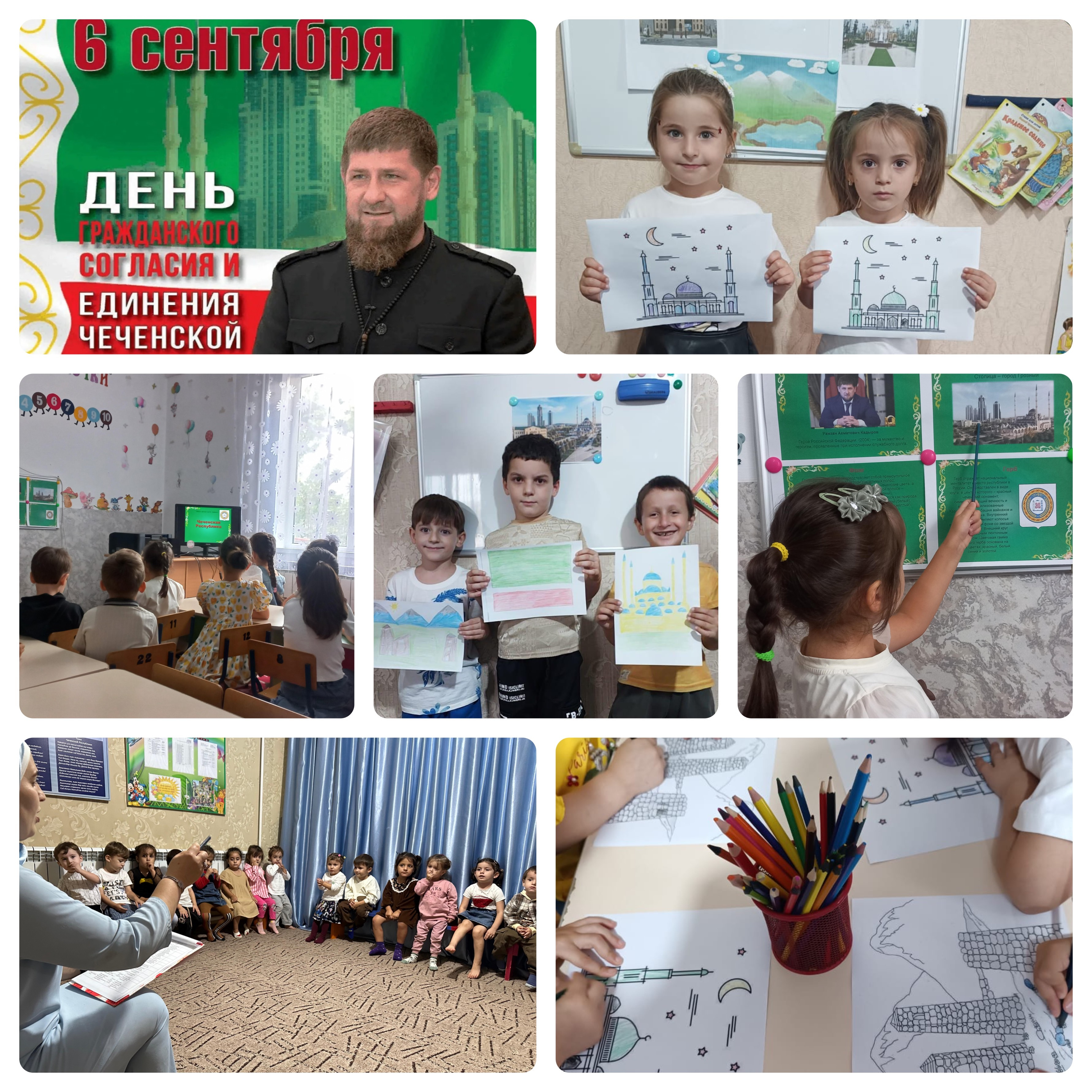 В целях формирования исторического познания у дошкольников, в соответствии с годовым планом, в МБДОУ "Детский сад №1 "Даймохк" со 02 по 06.09. проведены тематические занятия, беседы. 04 сентября проведена выставка рисунков "Достойный путь".