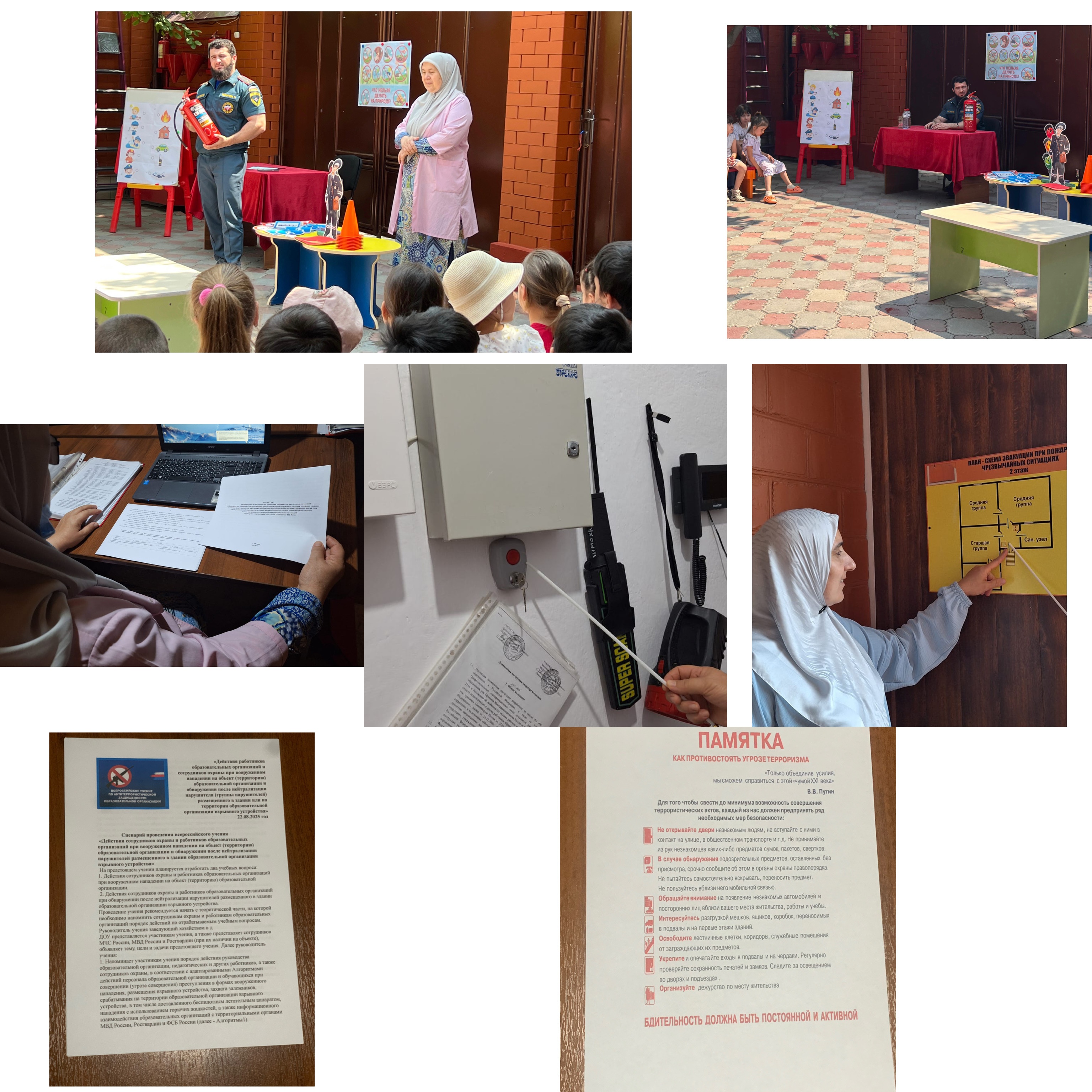 22.08.202522 августа в МБДОУ «Детский сад №1 Даймохк» были проведены учения «Действия сотрудников охраны и работников образовательных организаций при вооруженном нападении на объект (территорию) образовательной организации и обнаружении после нейтрализации нарушителей размешенного в здании образовательной организации взрывного устройства»На мероприятие был приглашен старший дознаватель ОНД и ПР по Гудермесскому району МЧС по Чеченской Республике Баймурадов Ислам Г.В учении отрабатывались два учебных вопроса:1. Действия сотрудников охраны и работников образовательных организаций при вооруженном нападении на объект (территорию) образовательной организации.2. Действия сотрудников охраны и работников образовательных организаций при обнаружении после нейтрализации нарушителей размещенного в здании образовательной организации взрывного устройства.