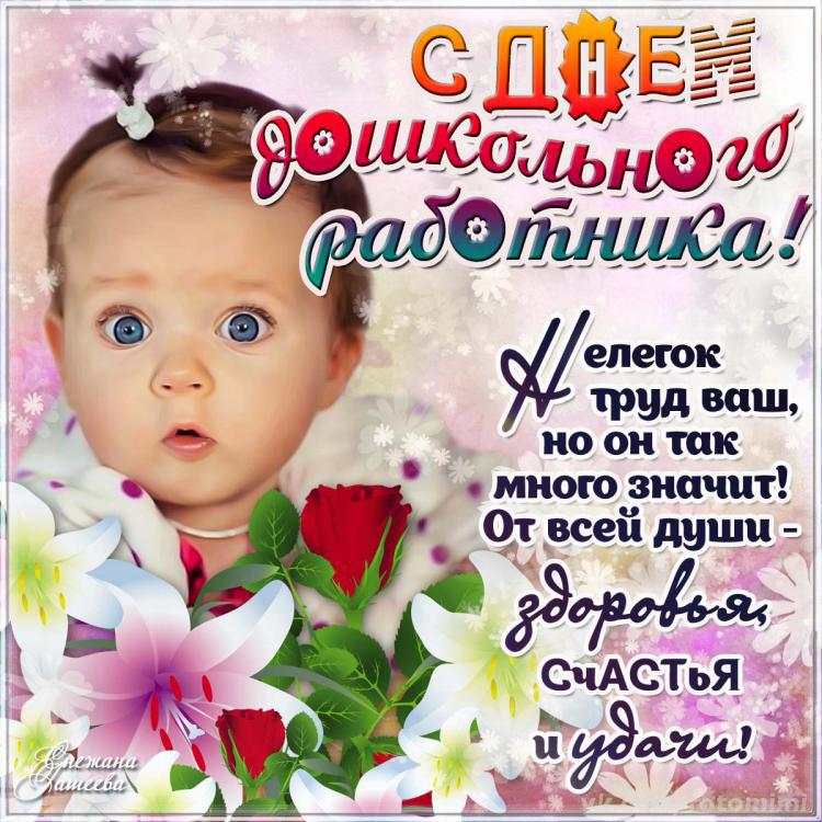 27.09.2018Работники дошкольных учреждений,Все воспитатели, все няни, повара,Сегодня праздник ваш, и мы вас поздравляем,Желаем процветания и добра.Желаем вам с хорошим настроениемРаботать ежедневно с малышней.Придумывать занятия с упоением,Чтоб души детские наполнить красотой.Мы вам желаем счастья в жизни личной,Успехов и признания в труде,Любви и радости — ну просто безграничных,Благополучия, гармонии в семье.